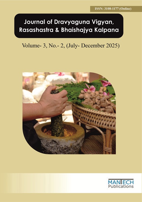 Journal of Dravyaguna Vigyan, Rasashastra & Bhaishajya Kalpana, published by Mantech Publications, is a peer-reviewed national journal dedicated to the scientific exploration of Ayurvedic pharmacology, pharmaceutics, and medicinal formulations. The journal provides a scholarly platform for researchers, academicians, and practitioners to share evidence-based studies on medicinal plants, herbo-mineral preparations, and traditional formulations. It emphasizes the standardization, safety, and therapeutic efficacy of Ayurvedic drugs through modern analytical approaches. By bridging classical Ayurvedic wisdom with contemporary research methodologies, the journal contributes to the global recognition of Ayurveda as a holistic science. Committed to academic integrity and innovation, it promotes authentic research in Dravyaguna Vigyan, Rasashastra, and Bhaishajya Kalpana.