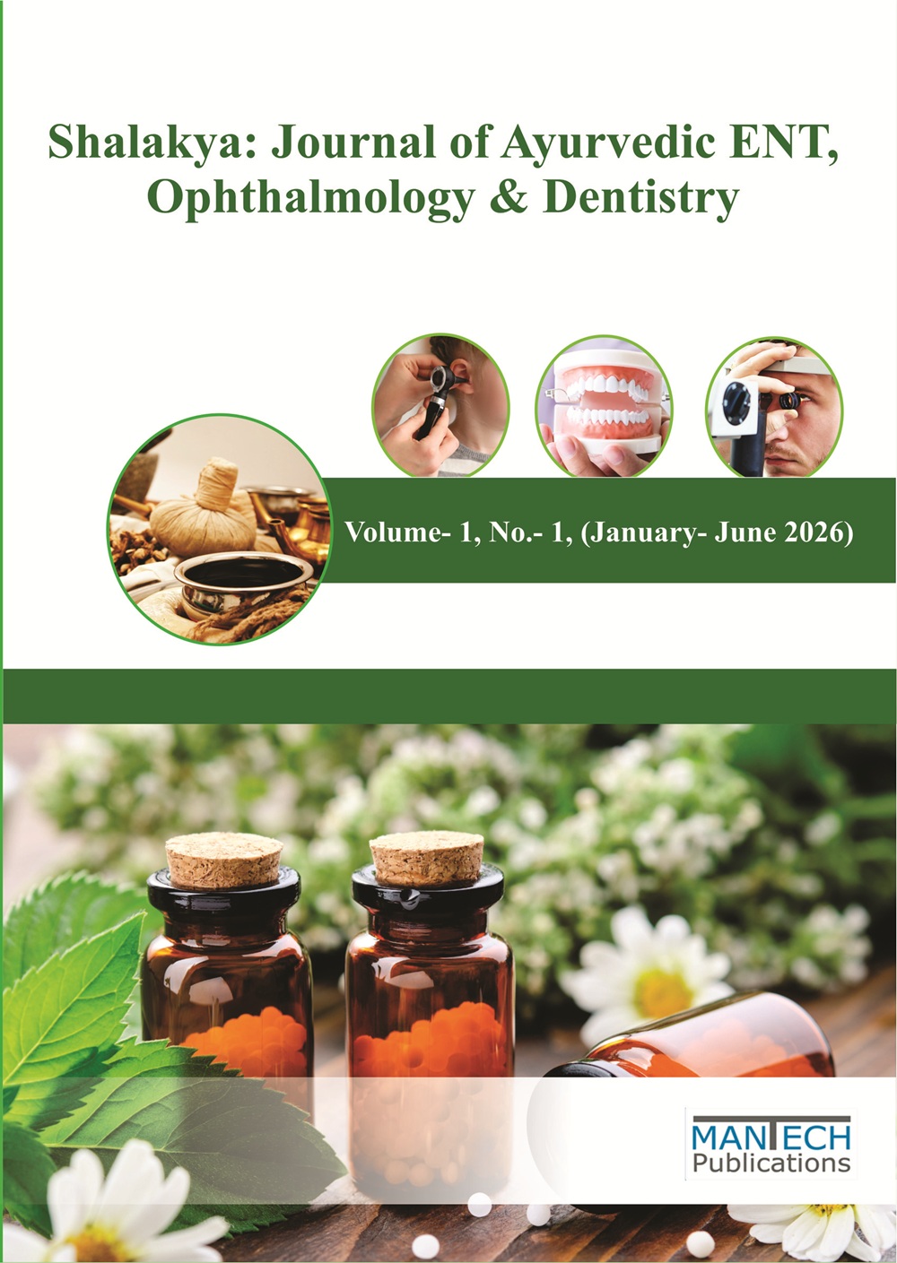 Shalakya: Journal of Ayurvedic ENT, Ophthalmology & Dentistry, published by Mantech Publications, is a peer-reviewed journal dedicated to advancing the principles and clinical applications of Shalakya Tantra in Ayurveda. The journal features original research, clinical studies, and traditional therapeutic approaches related to ENT, ophthalmology, and dental care. It promotes integration of classical Ayurvedic wisdom with modern diagnostic and treatment methodologies. Emphasizing holistic healing and preventive care, the journal supports evidence-based Ayurvedic practices. It serves as a scholarly platform for practitioners, researchers, and academicians committed to strengthening Shalakya Tantra and specialized Ayurvedic healthcare.